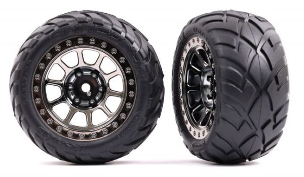 Tires & wheels, assembled, glued (2.8″) (RXT black & chrome wheels, Anaconda® tires, foam inserts) (4WD electric front/rear, 2WD electric front only) (2) (TSM rated)