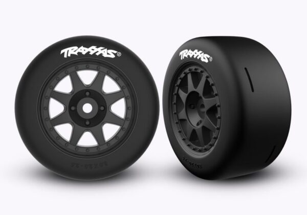 Tires & wheels, assembled, glued (black wheels, dual profile (2.0″ outer, 2.6″ inner), Speed Slicks tires) (soft compound, rear) (2)
